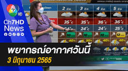 เช้าข่าว 7 สี - พยากรณ์อากาศวันนี้ 3 มิถุนายน 2565มรสุมตะวันตกเฉียงใต้ที่พัดปกคลุมทะเลอันดามัน ประเทศไทย และอ่าวไทยเริ่มมีกำลังอ่อนลง ...